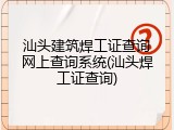 - 汕头建筑焊工证查询网上查询系统(汕头焊工证查询) 2025年11月02日